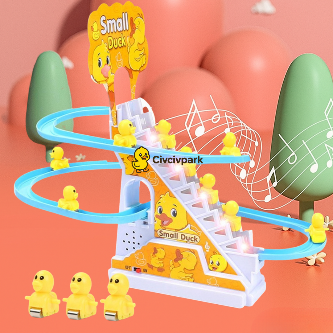 🔋 Civcivpark pille çalışır. Küçük sarı ördekler merdivenlerden yukarı çıkar, kaydıraktan aşağı kayar. LED ışıklar ve müzik sistemi ile çocuklara eğlenceli bir oyun deneyimi sunar.