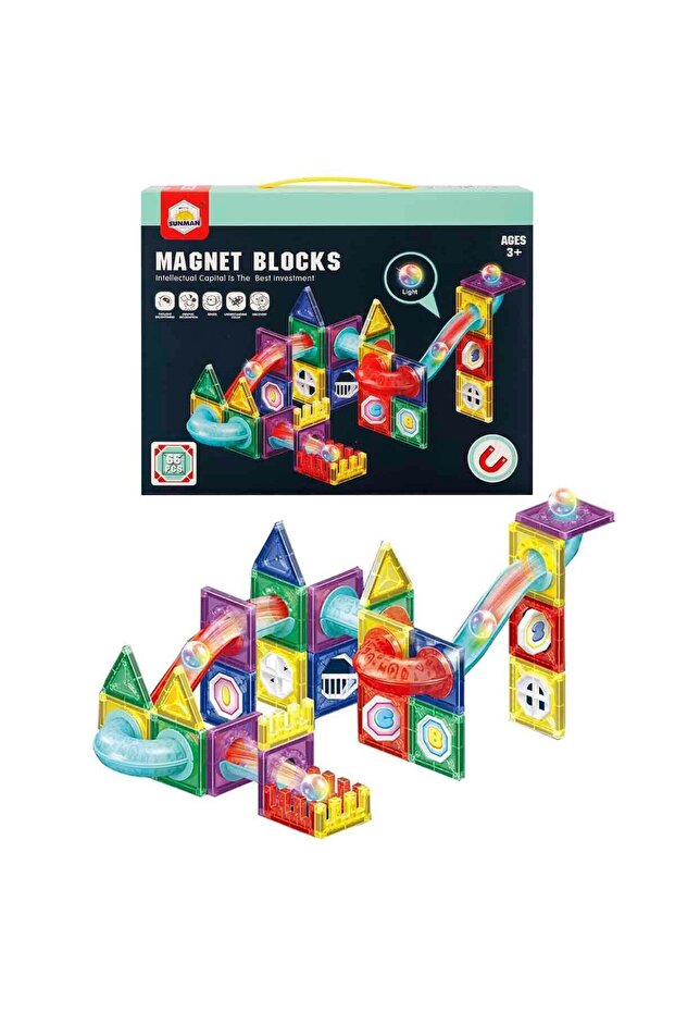 Eğitici Manyetik Bloklar - Işıklı Top 66 Parça
